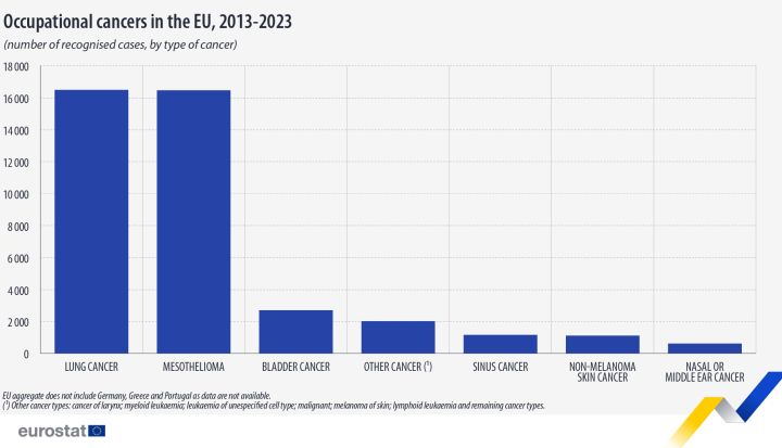 Между 2013 г. и 2023 г. в ЕС официално са признати 40 538 случая на професионални ракови заболявания. През 2023 г. са признати 3500 професионални ракови заболявания – със 191 случая повече, отколкото през 2022 г. (3309).